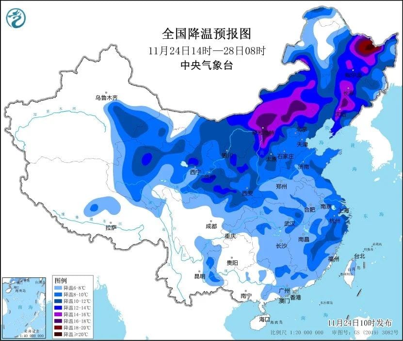 From Saturday through Thursday, temperatures across much of the country are expected to decrease by 6 to 10 degrees Celsius, according to the National Meteorological Center. In parts of northwestern, northern, and northeastern China, temperature drops of 12 to 14 degrees Celsius are anticipated, with some areas experiencing decreases of up to 16 degrees Celsius.