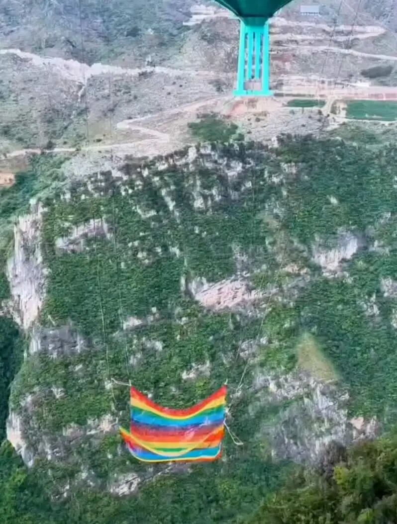 Test footage of a groundbreaking “rope-free bungee jump” at Guizhou’s Huajiang Canyon Bridge has gone viral online, showing sandbags plummeting into a massive safety net below. The daring attraction—China’s first of its kind—has sparked a mix of excitement and skepticism among netizens regarding its safety and adrenaline-pumping appeal.