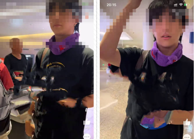 At Shanghai Pudong Airport, a foreign young man carelessly threw used paper towels on the floor after using the restroom. A Chinese man glared at him, but the foreigner walked away without concern.