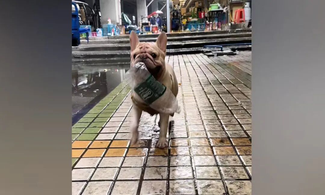 A 5-year-old French bulldog named Xiaobai from Guangzhou, Guangdong Province, has become an internet sensation in China after spending the past five years collecting empty plastic bottles. According to Jiupai News, videos of Xiaobai—uploaded by his owner, surnamed Zhang, on platforms like Xiaohongshu and Douyin—show the dog roaming streets and shops, grabbing bottles by the neck and delivering them to his owner.