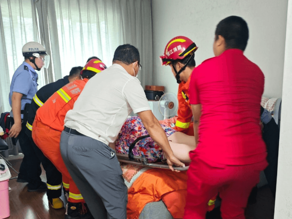 In a residential area on Choujiang Street, Yiwu City, Zhejiang Province, a foreign resident recently experienced an acute cerebral infarction, commonly known as a stroke, leaving him trapped inside his home. A coordinated rescue effort involving firefighters, medical personnel, and police was quickly initiated.