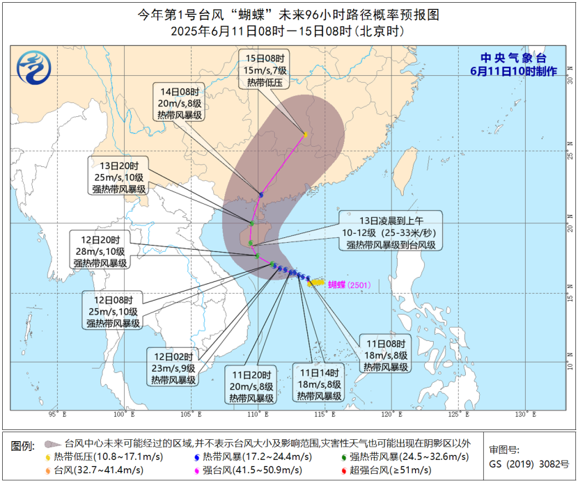According to forecasts, Wutip is expected to approach the southern coast of Hainan Island and western Guangdong by Friday (the 13th). The CMA’s National Meteorological Centre predicts the typhoon will move west-northwest at 10–15 km/h, gradually intensifying before making landfall on the 13th with sustained winds of 10–12 on the Beaufort scale (25–33 m/s). After landfall, it is likely to turn northeastward and weaken.