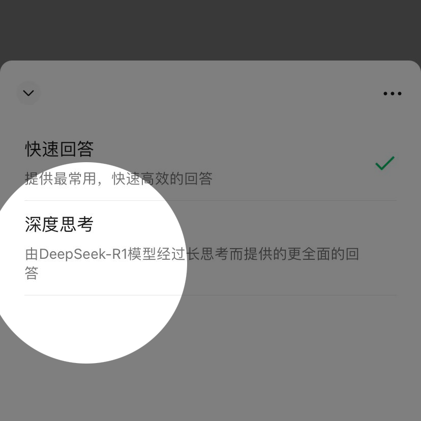 The default AI engine is Tencent’s Hunyuan, you can tap “快速回答” to switich it to Deepseek