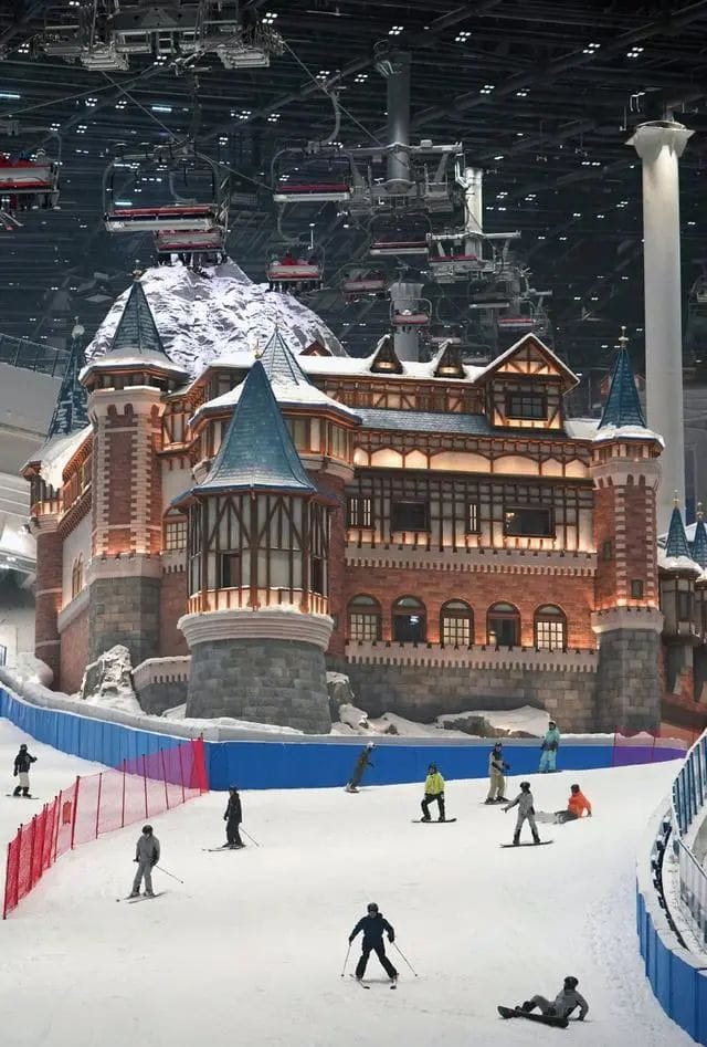 The resort’s Snow World features a vertical drop of nearly 60 meters and three professional skiing slopes, which together span approximately 1,200 meters in length. Additionally, there is a sizable snow entertainment zone that offers various leisure activities for visitors.